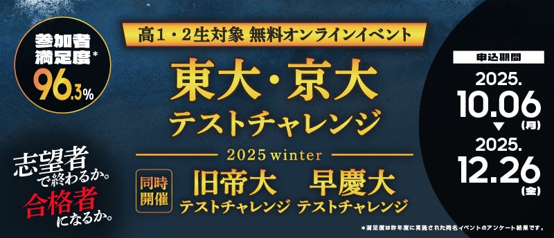 【無料配信】 “志望者”で終わるか。”合格者“になるか。高1・2生対象「東大・京大/旧帝大/早慶大テストチャレンジ-2025winter-」を開催!