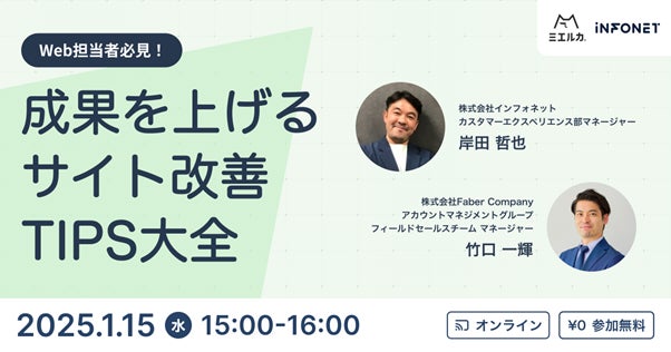 株式会社Faber Company(ファベルカンパニー/本社:東京都港区、代表取締役:稲次正樹・古澤暢央)は、「成果を上げるサイト改善TIPS大全」をテーマに、株式会社インフォネットと共催ウェビナーを実施いたします。