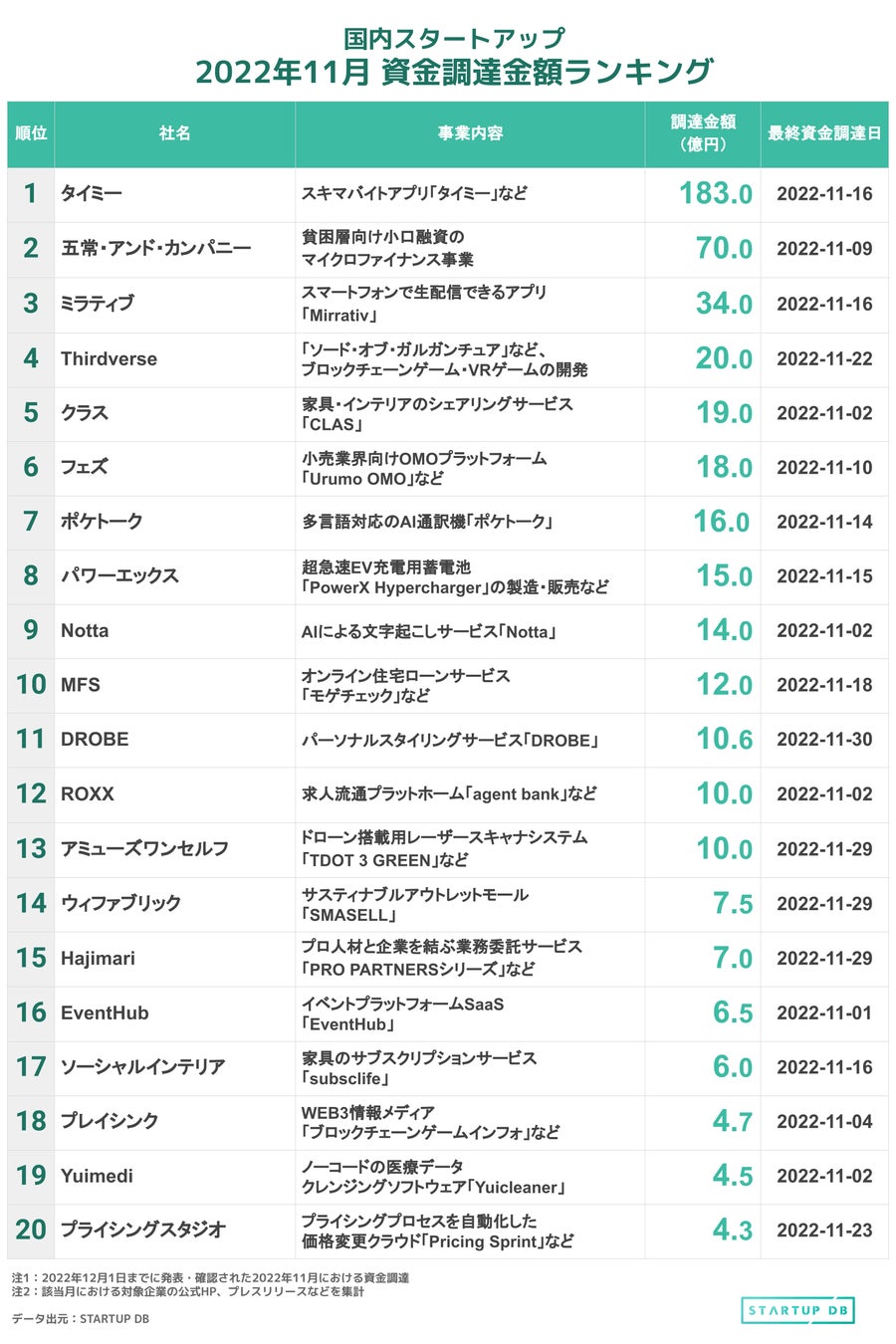 ・レポート記事:STARTUP DB (https://startup-db.com/magazine/category/research/funding-ranking-202211)