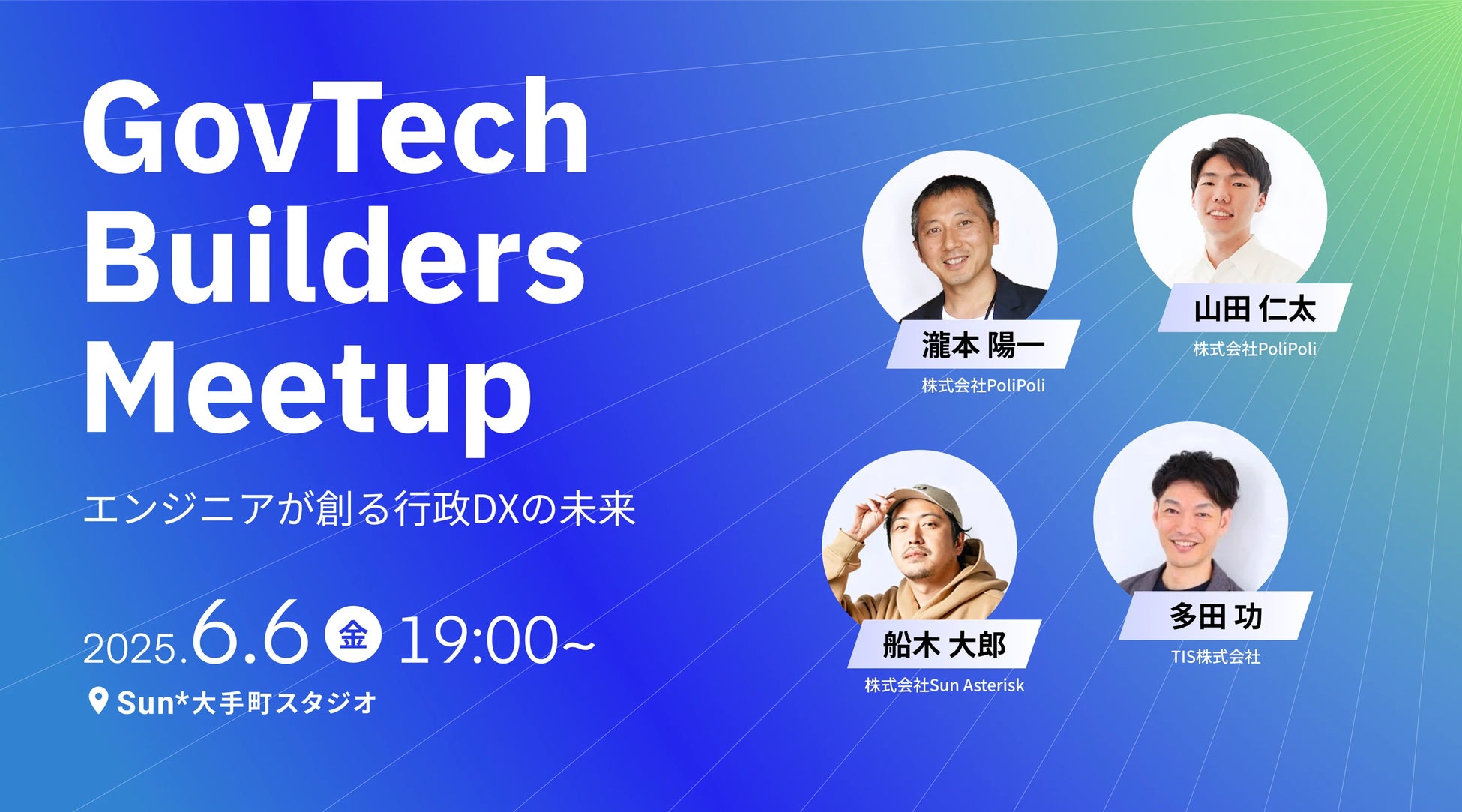 【6/6(金)19:00〜】PoliPoliとSun*、行政DXの未来を創る「GovTech Builders Meetup〜エンジニアが創る行政DXの未来〜」共催
