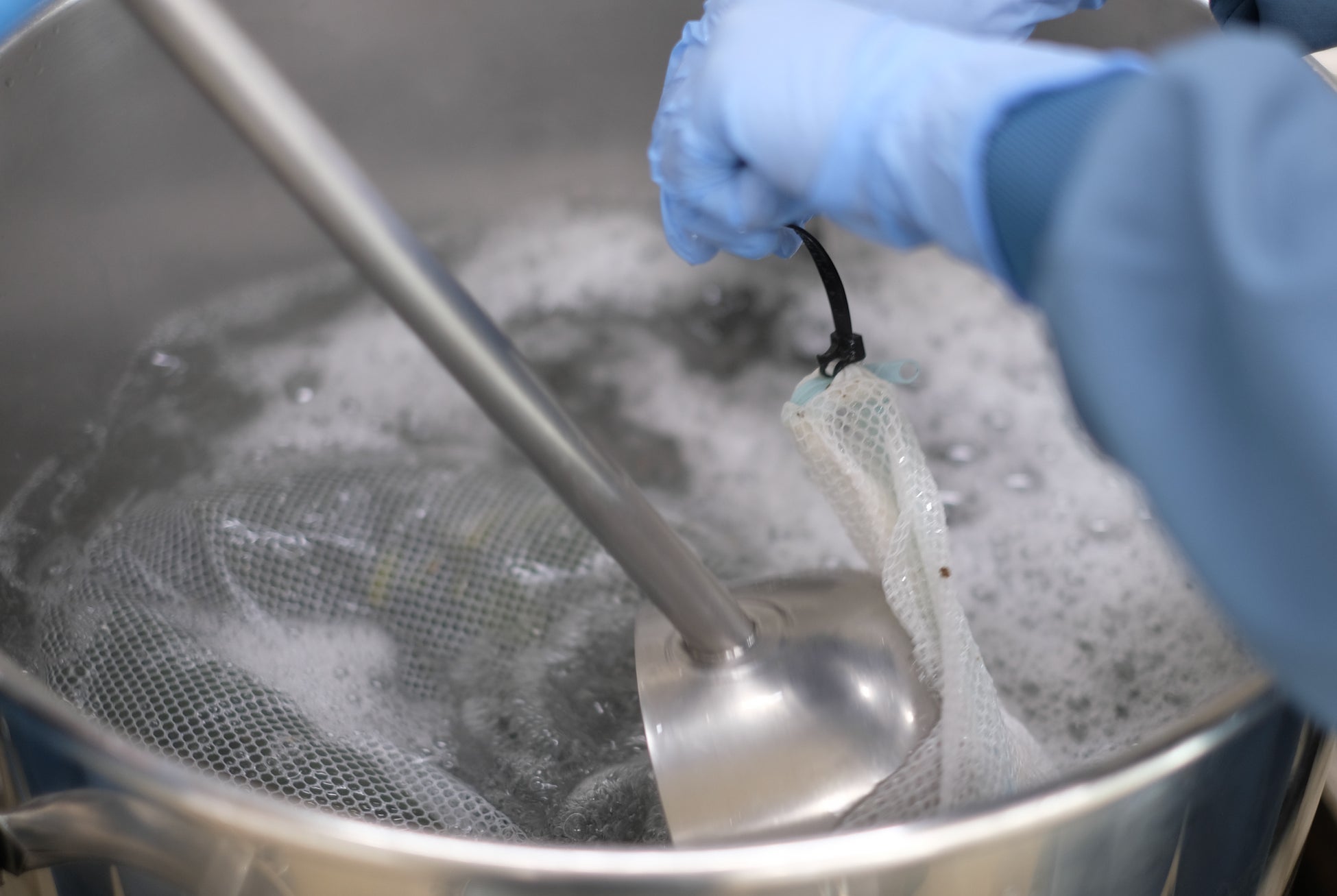 そこで、旬シリーズでは、漁で水揚げされた中から、サイズが規格外で販売できず、捨てられるはずだった小さな“生”のがごめ昆布を使って研究開発をスタート。がごめ昆布*1特有の強いとろみはフコイダンによるものです。このとろみを多く抽出するためには生の昆布を長時間加熱処理することができません。しかし、昆布についている塩分や汚れを取り除くため、ベストな湯温と加熱秒数を100パターン以上繰り返す実験を行いました。その結果、適温のお湯に数十秒くぐらせたがごめ昆布を、水に浸して冷蔵庫で16時間寝かせると、私たちの理想とする濃厚なとろみが抽出されることがわかりました。SHIROのものづくりの原点は、このように素材と向き合う研究開発にあります。また、他のスキンケアシリーズも素材が持つ力を引き出し製品に詰め込んでいます。