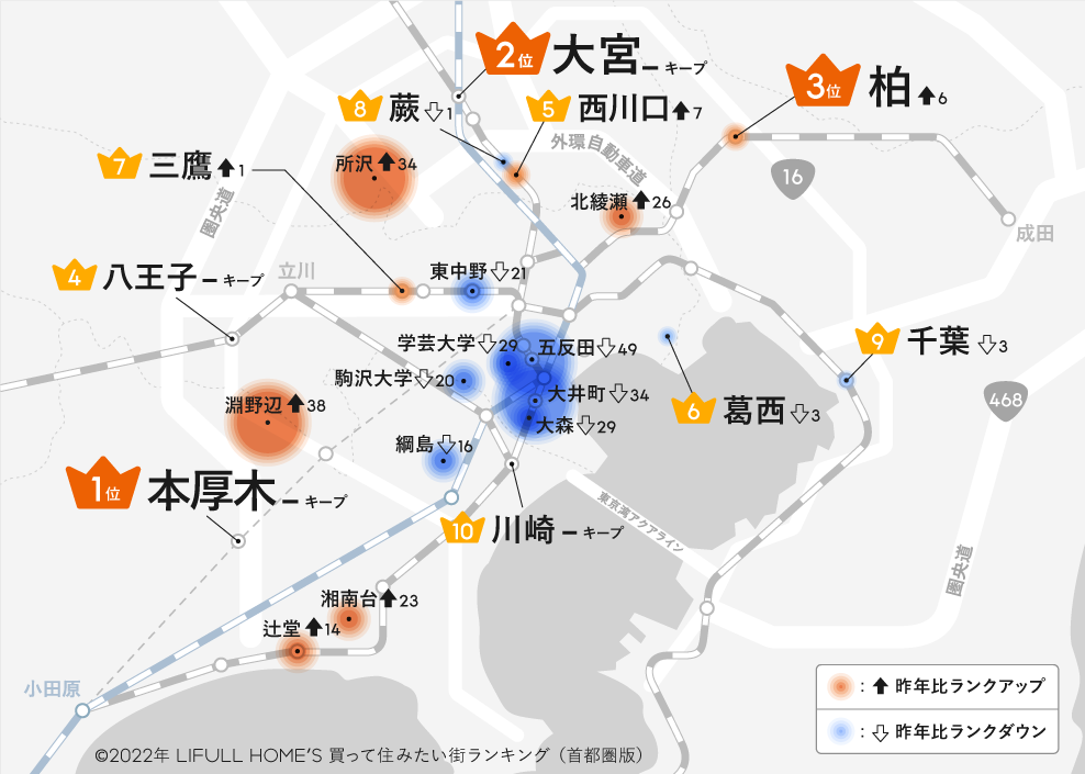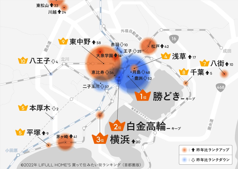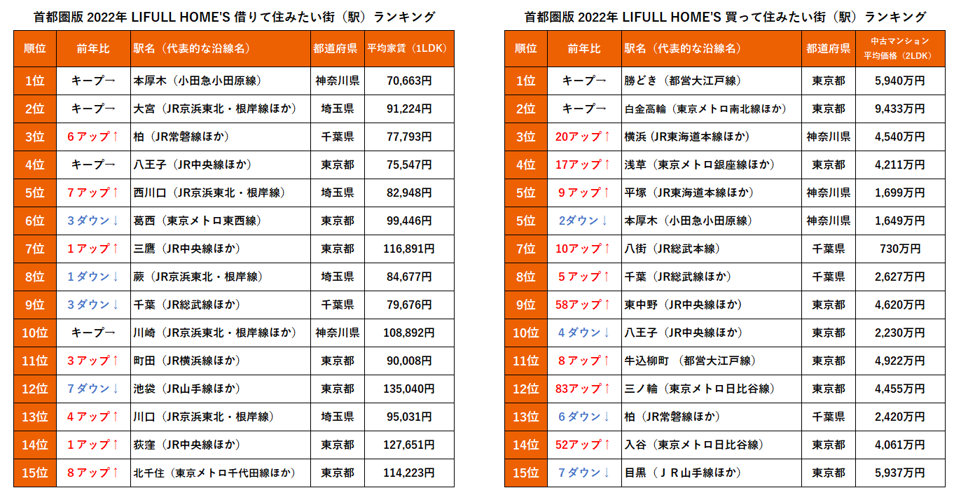 <首都圏版『2022年 LIFULL HOME'S 住みたい街ランキング』発表>2年連続“借りて住みたい街” 1位は「本厚木」、3年連続“買って住みたい街” 1位は「勝どき」