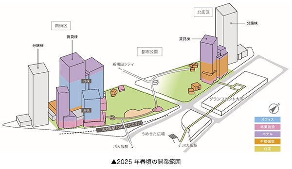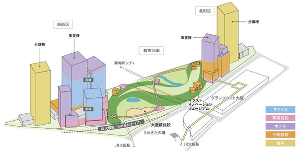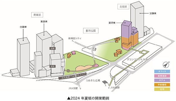 JR大阪駅前に約45,000平方メートルの都市公園を含む新たな街が、2024年夏頃に先行まちびらき