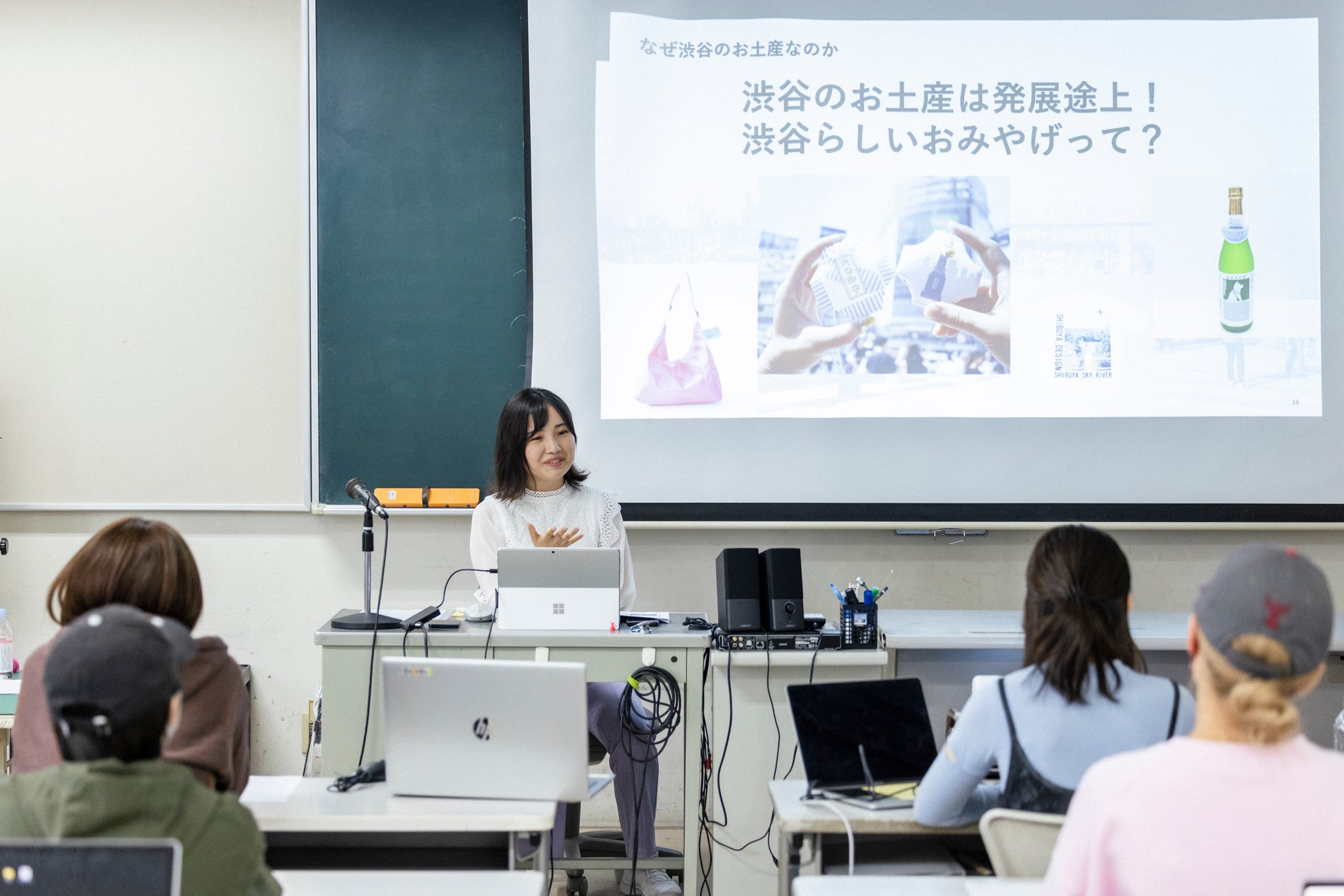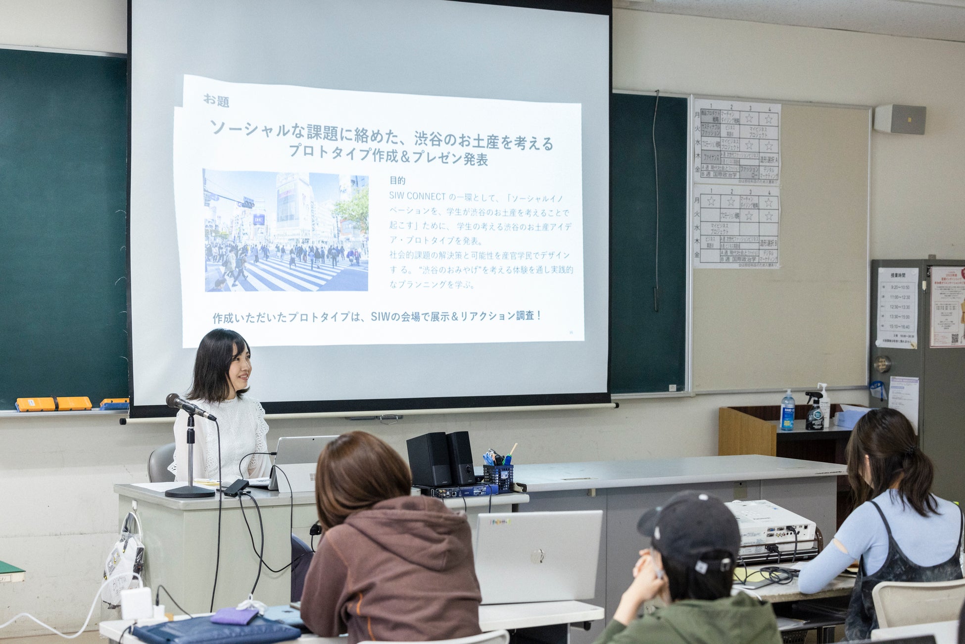 文化服装学院ファッション流通高度専門士科4年の「次世代ファッションビジネス」の授業とのコラボレーションで、学生が考える渋谷のお土産アイデアのプロトタイプを11月に開催するSIWで発表します。渋谷のお土産を考える体験を通し実践的なプランニングを学びながら、社会的課題の解決策と可能性を産官学でデザインしていきます。今後の授業では、課題の抽出や市場動向などの調査と商品コンセプトの設計を行った後に、実際のアイデアを具現化したサンプルを制作し中間発表会を経て、11月のSIW期間中に会場での展示と発表を行う予定です。