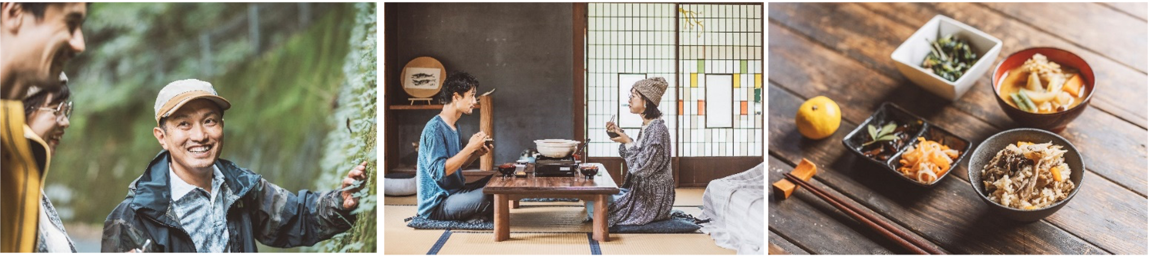 東京最後の野生児と呼ばれている有名ガイドと大丹波の集落などをモビリティで散策しつつ、ガイドと一緒に自然体験を満喫。散策後には、御嶽の古民家でガイドとっておきの舞茸ご飯ときのこ汁が食べられる昼食付き体験ツアーです。