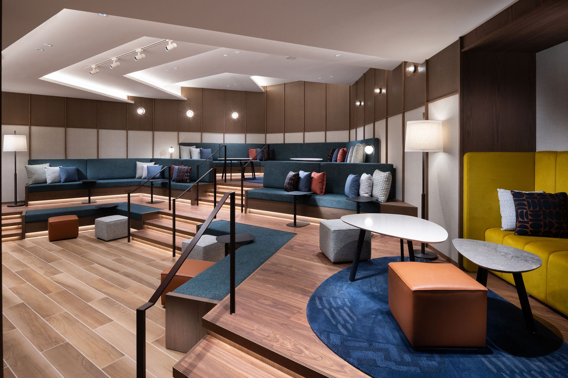 デザインを手がけたのは、受賞歴を持つシンガポール拠点のデザイン会社 HBA(Hirsch Bedner Associates)。新宿の豊かな文化的遺産と東京の現代的なエネルギーからインスピレーションを得て設計されました。カラーパレットは東京の伝統色を讃え、17世紀から日本美術に見られる深い青や藍色を基調に、温かみのあるアースカラーが木造建築の趣を想起させます。さらに、随所に配された金色のアクセントは、この地域にかつて暮らした侍たちへのオマージュとなっています。