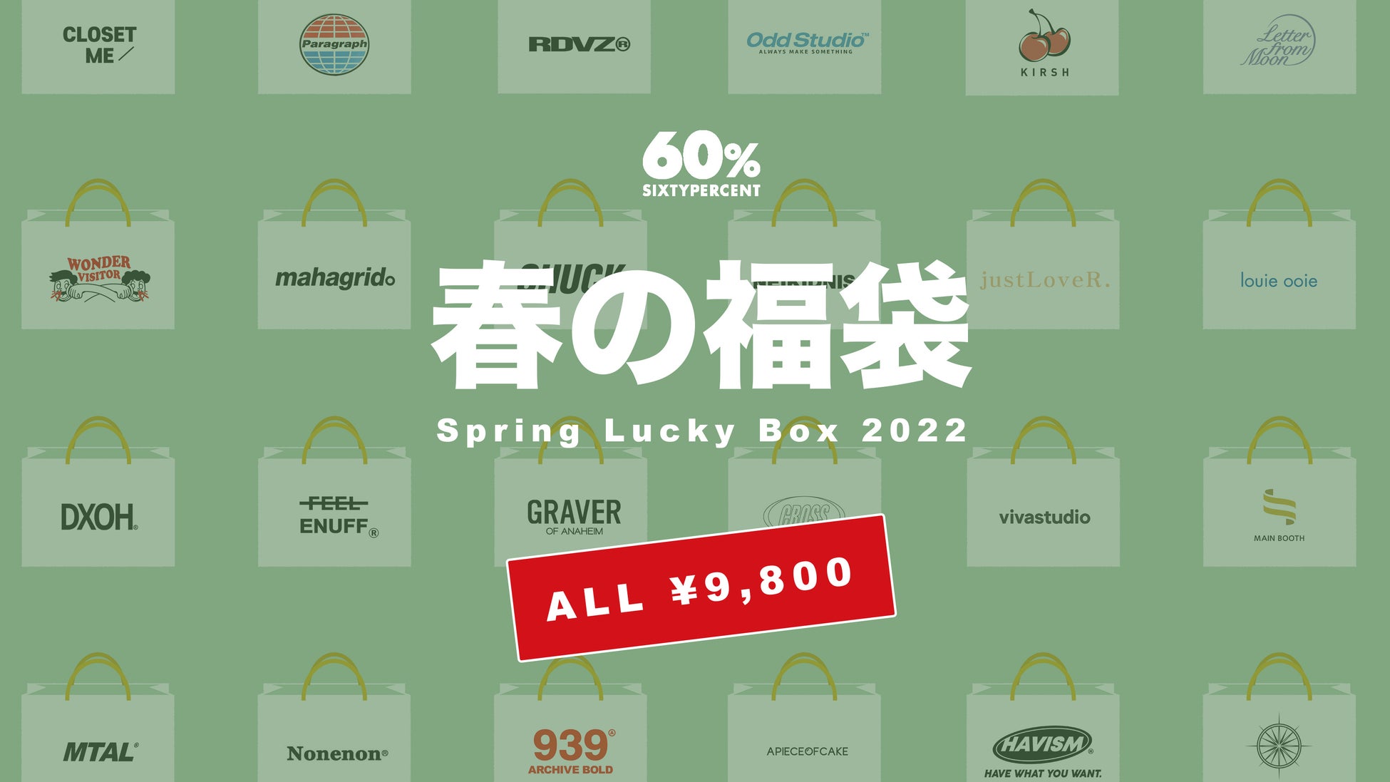 60%とブランドから2022年の春を迎え、前回大好評だった恒例のスペシャル福袋を期間限定で販売。販売価格は一律9,800円(配送料別)で、福袋の中身は約2倍相当の商品が内包されている。全て60%(シックスティーパーセント)での独占販売となる。