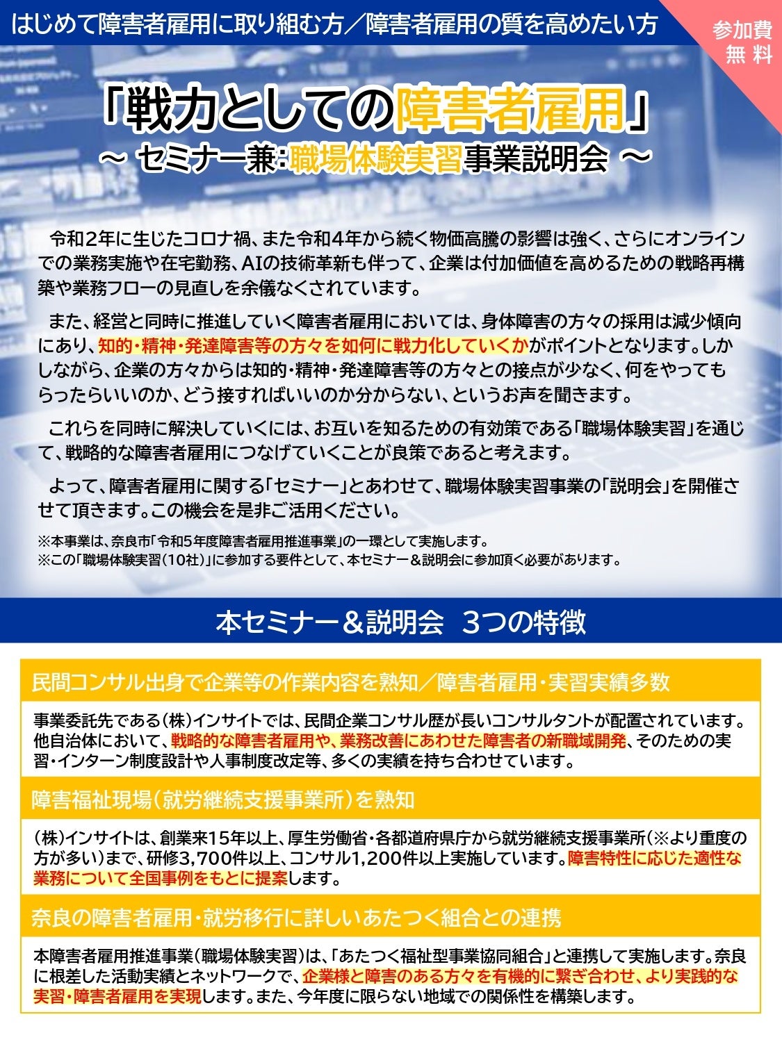 奈良市「戦力としての障害者雇用」セミナー参加者募集中!