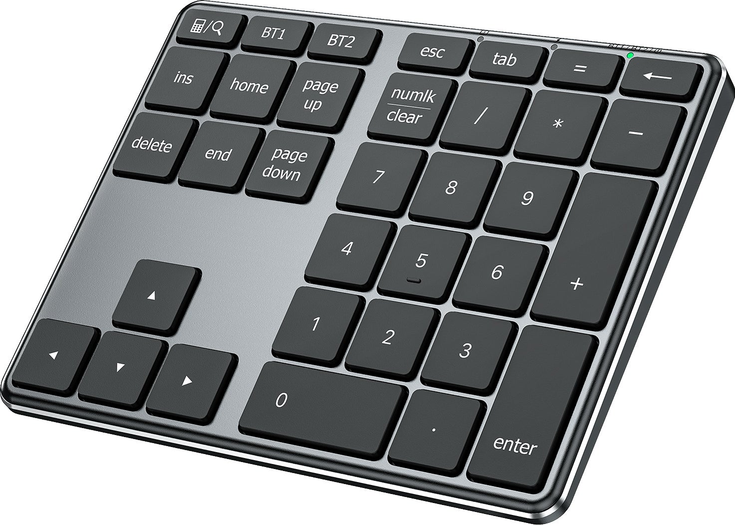ケーブルが不要なBluetooth接続のテンキーです。方向キーなど、通常よりも多い34のキーを搭載したテンキーは、事務作業やデジタルイラストの左手デバイスに最適です。電卓キーを押せば、テンキーがそのまま電卓になります。またバッテリーは、便利なType-C充電式を採用しました。