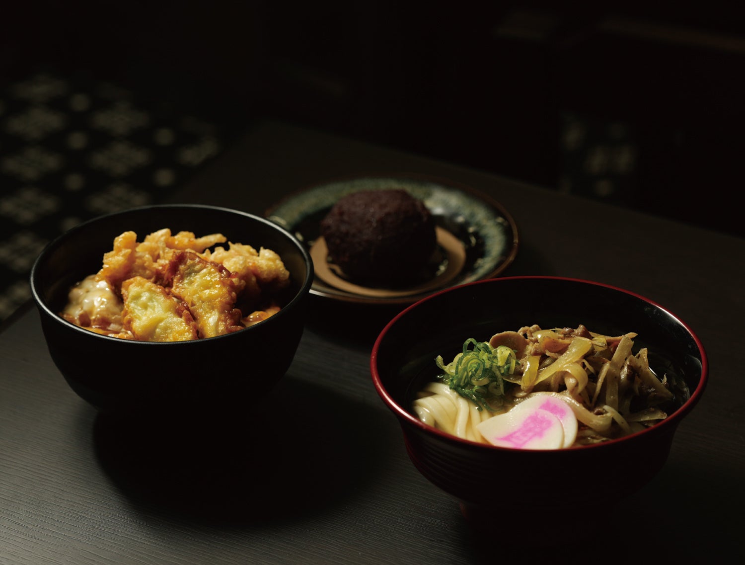 セット内容:ミニかしわ汁うどん、ミニ葱鶏天とじ丼(鶏天2個・白葱2個)、ミニぼた餅※なしも選べます。