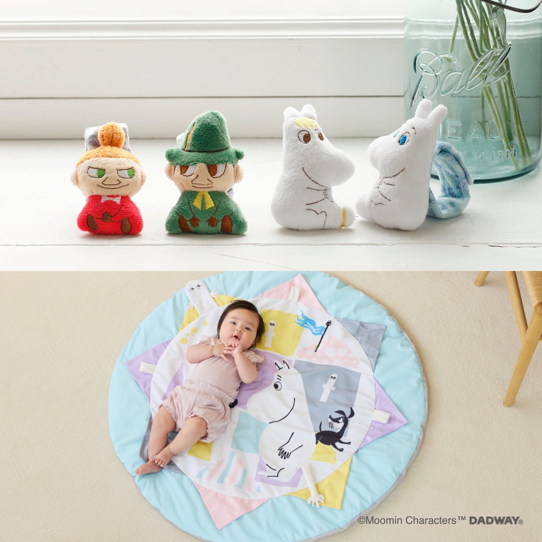 「プレイマット/ムーミン/スウィートドリーム」と、ムーミンと仲間たちのリストラトルのセット。まあるいカラフルなプレイマットは、中綿入りでふわふわ。 カシャカシャ音のするニョロニョロ、ふわふわのさわり心地が気持ちいいムーミンのしっぽなど、赤ちゃんが楽しく過ごせるしかけ付き。ループにリストラトルやお気に入りのおもちゃを取り付けるとオリジナルのプレイマットになります。