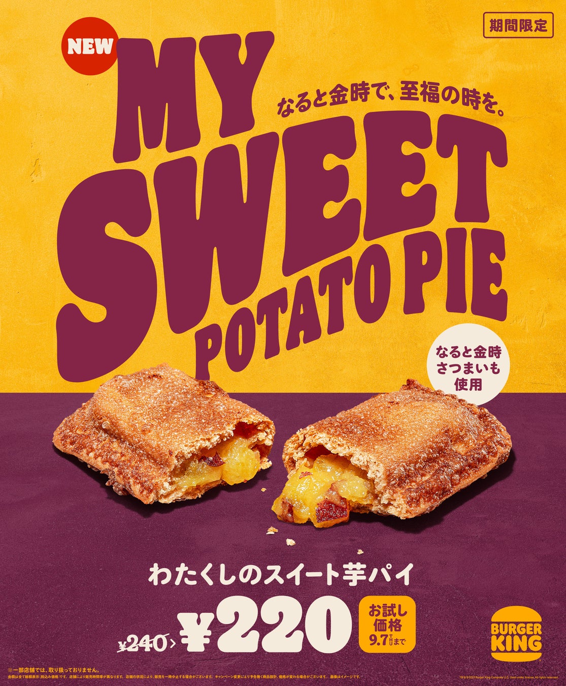 バーガーキング® から秋の味覚 徳島県産さつまいもブランド「なると金時」を使用した『わたくしのスイート芋パイ』登場!上品な甘さとホクホクとした食感がサクサクのパイ生地にベストマッチ!
