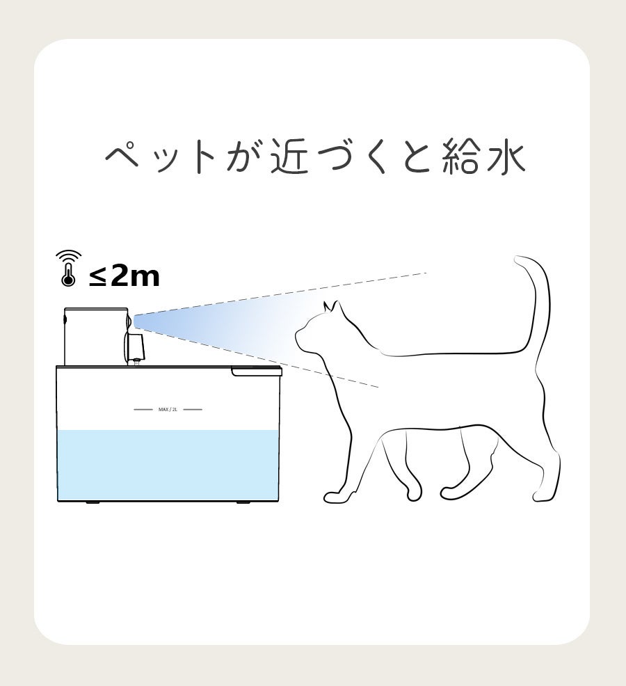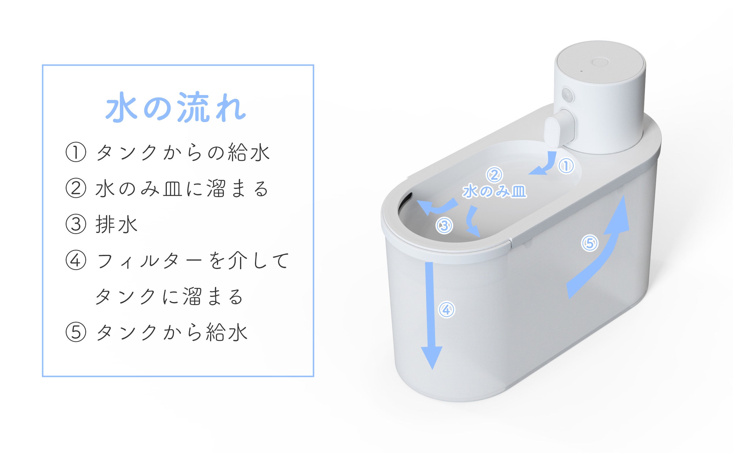 モーターは消音モーターを使っているため不快な音がなく、ペットが近づくと水のチョロチョロと流れる音がペットの興味を持たせます。