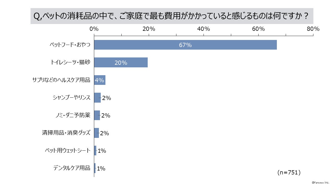 お客さまの声を最先端の分析でファン増加につなげる企業、株式会社ファンくる(本社:東京都千代田区、代表取締役社長:山口敬人)は、「ファンくる」会員を対象に、定期的に消費者の意識調査を実施しています。今回はペット向け消耗品について、購入の際に重視していることや、購入場所などを「ファンくる」会員751名(男性184名、女性567名)に調査を実施しました。