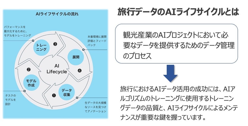 データを体系的に管理し、AI 実装を超簡単に!というData to AI 仕事術では、観光産業のDXを推進するために、旅行に関わる膨大なデータを適切に管理することで、AIに向けたデータ活用の準備を進めることが重要です。AIにおけるデータプラットフォームには、AIデータの源となる、各分野に分散されている大量かつ多岐にわたるデータドリブンのためのデータを効率的かつ安全に収集、保存、管理することが求められます。