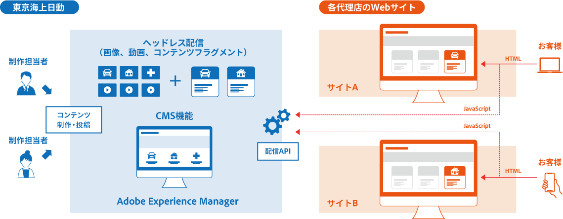 また、ヘッドレス型配信機能により、代理店ごとに異なるコンテンツを東京海上日動で一括して管理しながら、それぞれの代理店webサイトに最適化されたコンテンツの配信を一貫して実行することが可能になりました。