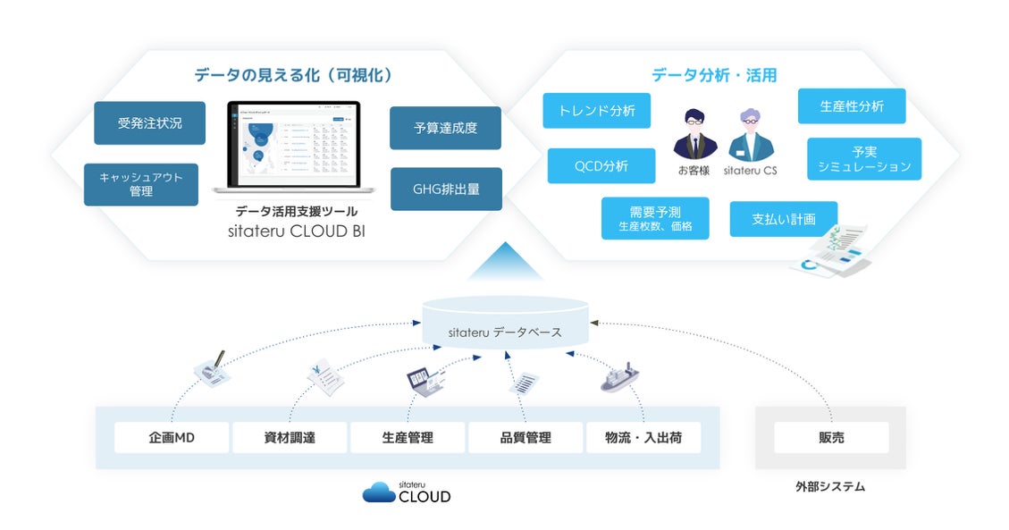 衣服・ライフスタイル製品のデジタル生産プラットフォームを提供するシタテル株式会社(本社:熊本県熊本市、代表取締役:河野秀和)は、クラウドサービス「sitateru CLOUD」に新機能「sitateru CLOUD BI(ビジネスインテリジェンス)」を追加しました。