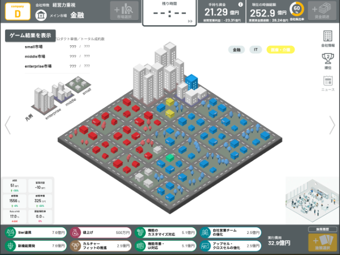 ゲーム内のスタートアップ企業をリアルに近い形でシミュレーション経営し、8期でARR100億円の達成を目指すゲームです。資本政策の策定、採用、マーケティング、セールス、プロダクト開発などの経営施策を行いながら、リアルな経営判断を体験できます。