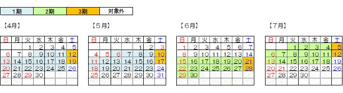 ※期間によって料金が変動します。(1~3期) ※一部設定除外日があります。(背景が白色の部分)