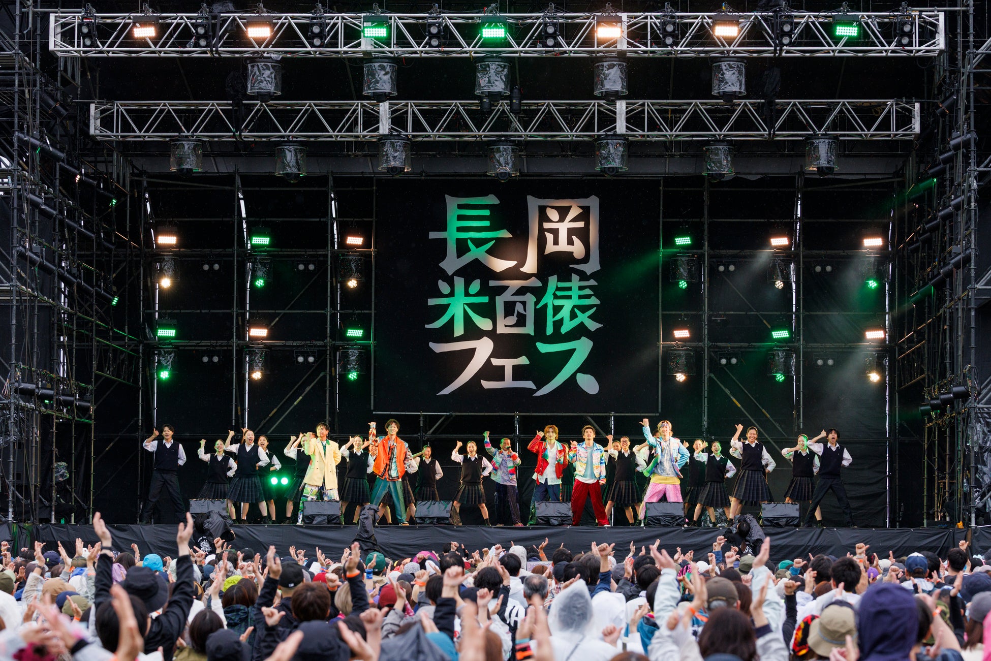 リハーサル終了間際、ボーカル・ギターの大澤敦史が「バンド名がバンド名だけに、お子様がいるファミリー向けに媚びを売っておけ」と、突然うまい棒を無料で配布することを宣言。「袋から1本取ったら後ろに回して」と大盤振る舞い。子供たちがうれしそうに、袋に手を突っ込んでいた。真っ赤な照明が点滅する中で、会長の大澤が「日本の米は世界一! 米フェスにおやつの時間がやってきましたよ」と気炎を上げると、驚く会場をよそに「デリシャスティック」を投下。ファンは受け取ったうまい棒を振り回しながら、「♪うまい棒!!」と無限ループで声をあげていた。米フェスのフィナーレには、長岡花火が打ち上げられるが、この日の天気は花火の日にはあまりうれしくはない雨。会長は「花火は出来れば満天の星空で見たかった。なのに、なんで今日は天気が悪いのか」とうらめしそうに語るとデスボイスで「なぜ今日天気が悪い」を披露。子供を持ち上げながら、「♪晴れろ!!!」と叫ぶ父親の姿もあった。会長が「ここで1曲、来週発売の新曲をやってもいいでしょうか」と話し始まったのは、メタル音楽に合わせて「バックドロップ」、「ブレーンバスター」などプロレス技をシャウトする「WAZA」。同曲は新日本プロレスのジュニアヘビー級による年に1度の大きな大会のテーマ曲に起用されたという。この日が初長岡というメンバー。会長は「皆さん先ほどは『U.S.A.!』と叫んでおられましたが、我々は今日『日本の米は世界一』という歌を歌いに来ました。それ以外は全て余興です」ときっぱり。「お米に向かっていく」と目標を定めると、ハラミや手羽先など米に合うメニューが歌詞に並ぶ「ニクタベイコウ!」。肉に対抗し、海の幸などを歌詞にした「島国DNA」を熱唱。観客の頭上にはマグロの形をした風船が、どこからともなく現れ、新鮮さを表現するかのようにピチピチと跳ね回っていた。会長の指示でマグロが回収された後は、本命の「日本の米は世界一」。会長は「秋にはこの日本有数の米どころが豊作でありますように。祈願をして歌う!!」と力を込めてシャウト。米農家をしているという観客もいる中で、異様な盛り上がりを見せていた。