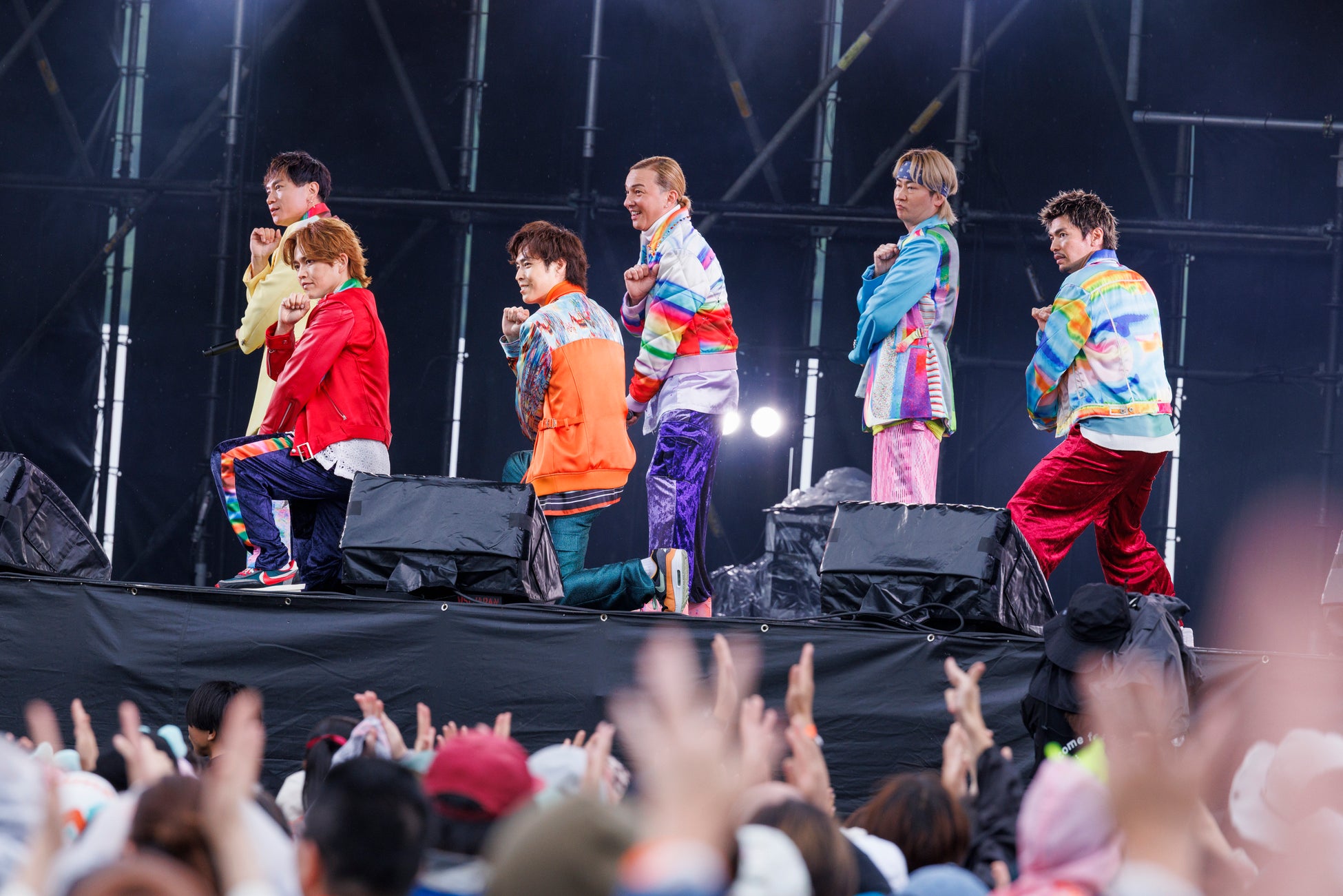 ジングルの後、「Let’s go!」と勇ましくステージに滑り出てきた6人。最後に姿を見せたISSAは「雨ぶっ飛ばして行こうぜ!」と声を掛け「P.A.R.T.Y. ~ユニバース・フェスティバル~」をドロップ。心地良いサウンドに、揺れが大きくなっていった。ダンスと歌でキメた後のMCでは、ISSAが「米が非常に大変な時期ではあります」と口を開くと、YORIが「5キロ2千円台でいってほしい」と応え、この日のライブのテーマは「米問題」と軽快なトークで観客を沸かせていた。アクロバティックなダンスとラップが光る「ごきげんだぜっ! 〜Nothing But Something〜」、「if…」ではISSAのグルービーな歌声が長岡の広い大地に響き渡った。縦に一列に並んで始めた「Feelin' Good -It's PARADISE-」では冒頭の「♪Feelin' Good」の歌声を、観客が頭上クラップで歓迎。6人が生み出す世界に酔いしれていた。ISSAが「〝米〟の時間をやりましょう」と提案し、KIMIが「U.S.A.」のダンスをレクチャー。KIMIは「今日は長岡、スペシャルバージョンで行きましょう!」と含みを持たせると、アメリカの星条旗と同じ、青、白、赤色にステージの照明が変化。披露された大ヒット曲「U.S.A.」では、日本テレビの番組企画で、全国131校の頂点に輝いた「上越高校ダンス部」がサプライズで初出演。「新潟県の魅力を全国にPRすること」を目標に活動する約30人の生徒が、プロのアーティストと「U」「S」「A」と声を上げながら、繰り広げるダンスに、地元・新潟が沸き返っていた。競演後「どうだった?」とマイクを向けられると男子生徒は「めっちゃ楽しかったです」と額の汗をぬぐっていた。