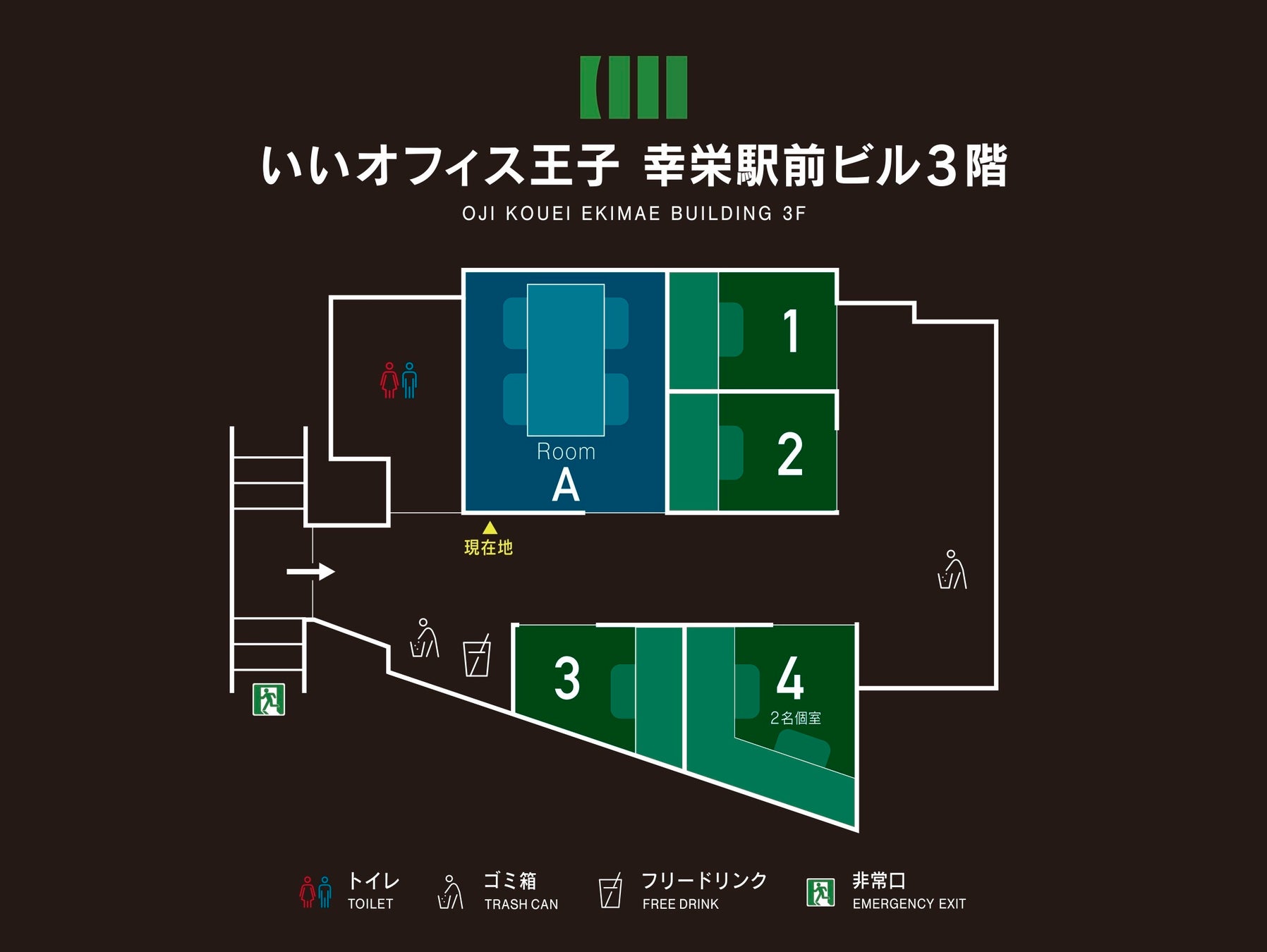 「いいオフィス王子」は、JR王子駅の北口から徒歩30秒の場所にある、1〜2名用個室、4名用会議室を備えたワークスペースです。