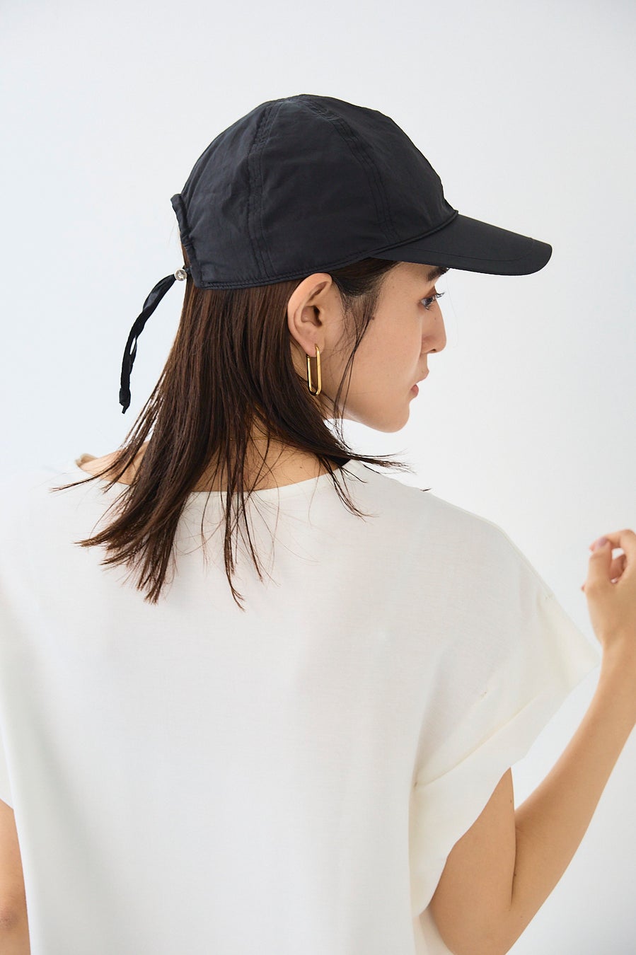 サイズ調整ができるタフタキャップ。おしゃれ見えするとの声が上がったシャカシャカのナイロン素材を使用し、アジャスター部分にはシルバーの金具を取り入れてアクセントに。アジャスターを通して紐を引っ張れば、自分の頭にぴったり合うサイズでかぶることができます。