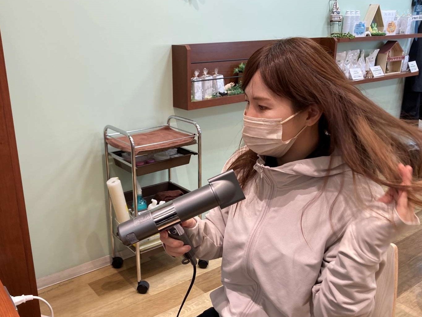 施術後は、セルフブローブースで、自分で髪を乾かしたり、スタイリング剤などを自由に使用