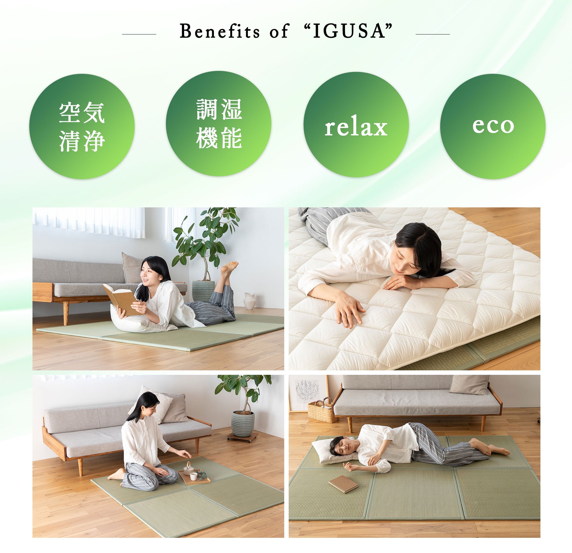 い草の香りはリラックス効果があり、ストレスを軽減し、心地よい空間を作り出します。