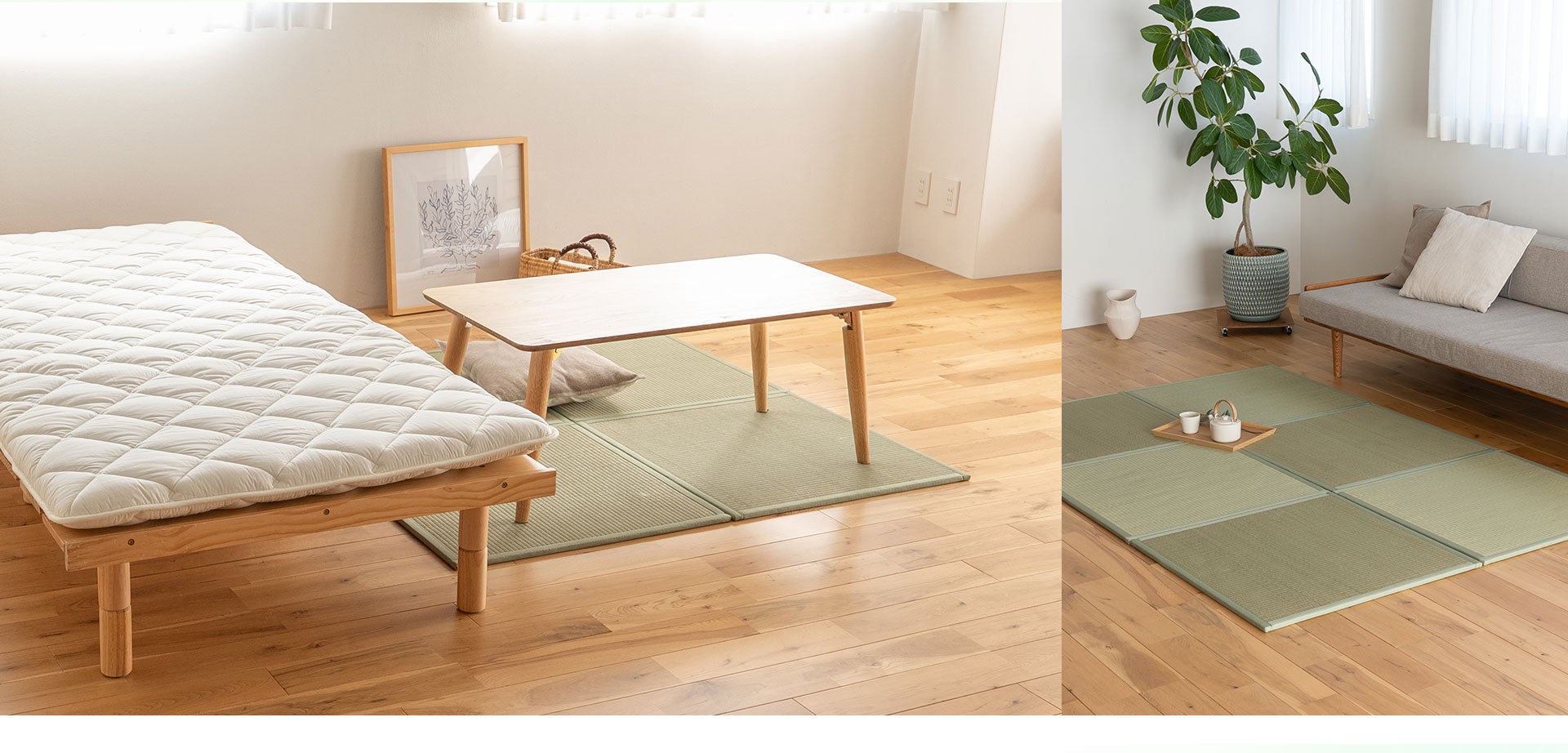 敷くだけですぐ和室。天然い草を使ったセパレートタイプの畳マットが新登場!用途や間取りに合わせて自由にレイアウト。手軽に"和の空間"を生活に取り入れることができます。