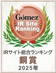 「Gomez IR サイトランキング 2025」は株式会社ブロードバンドセキュリティが国内上場企業のIRサイトの使いやすさや情報の充実度の評価を目的に調査したものです。「ウェブサイトの使いやすさ」「財務・決算情報の充実度」「企業・経営情報の充実度」「情報開示の積極性・先進性」の4つのカテゴリで評価を行います。当社が「銅賞」に選出されるのは3年連続3回目です。