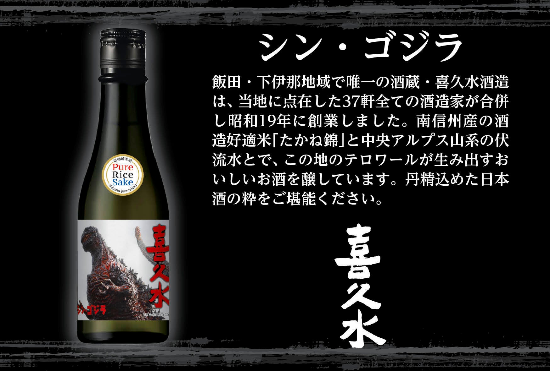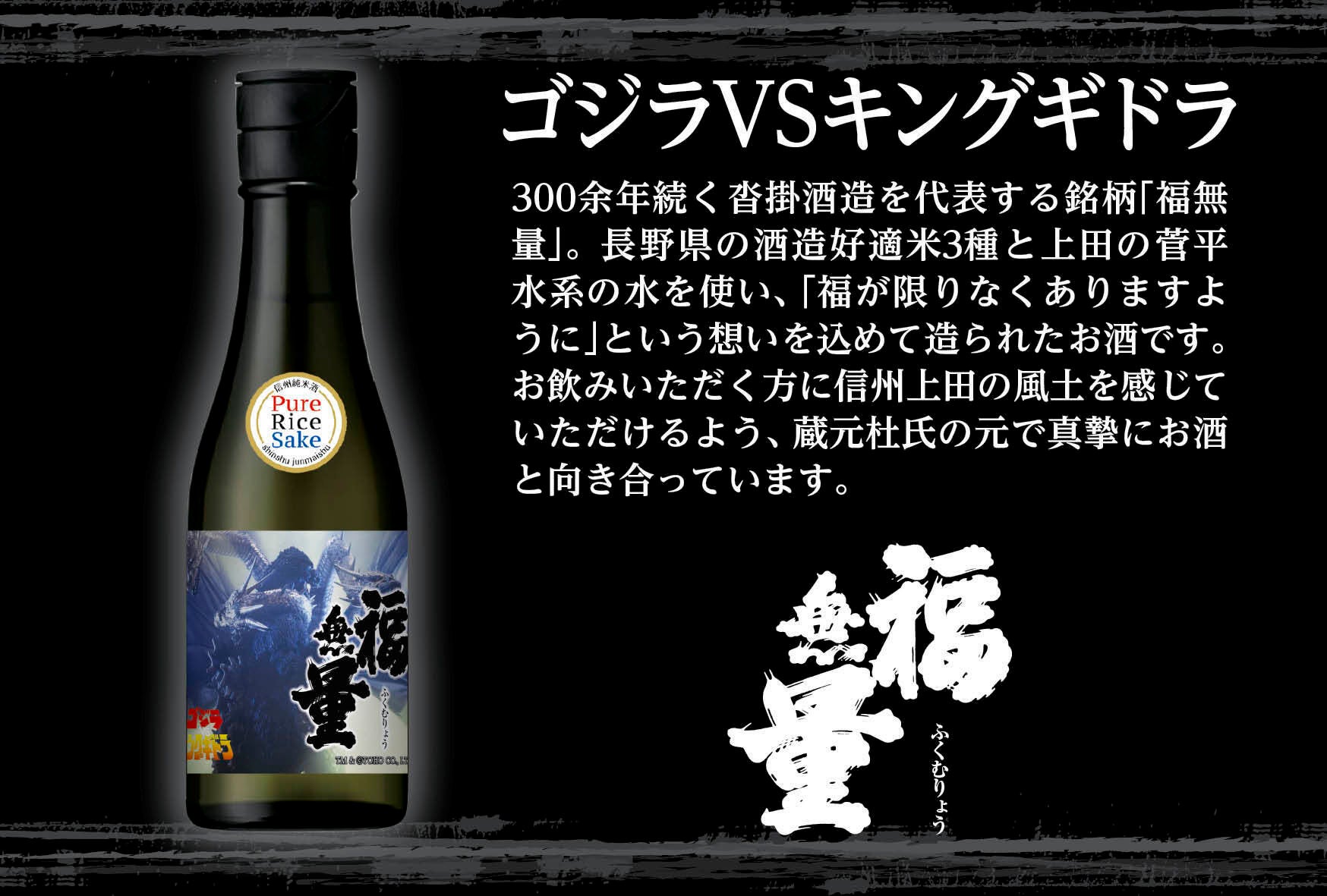ゴジラの名作映画ラベルが並んだ特別セットと長野県の日本酒をこの機会に是非お楽しみください。