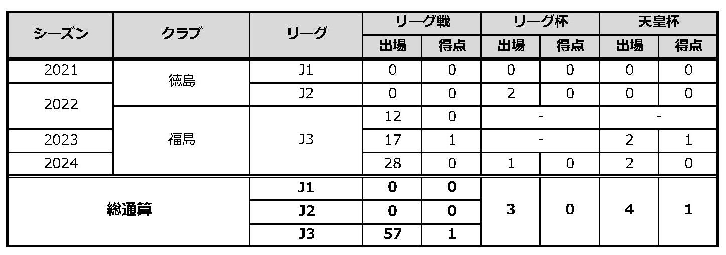 サッカー歴:舎人サッカースポーツ少年団→修徳中→修徳高→徳島ヴォルティス→福島ユナイテッドFC