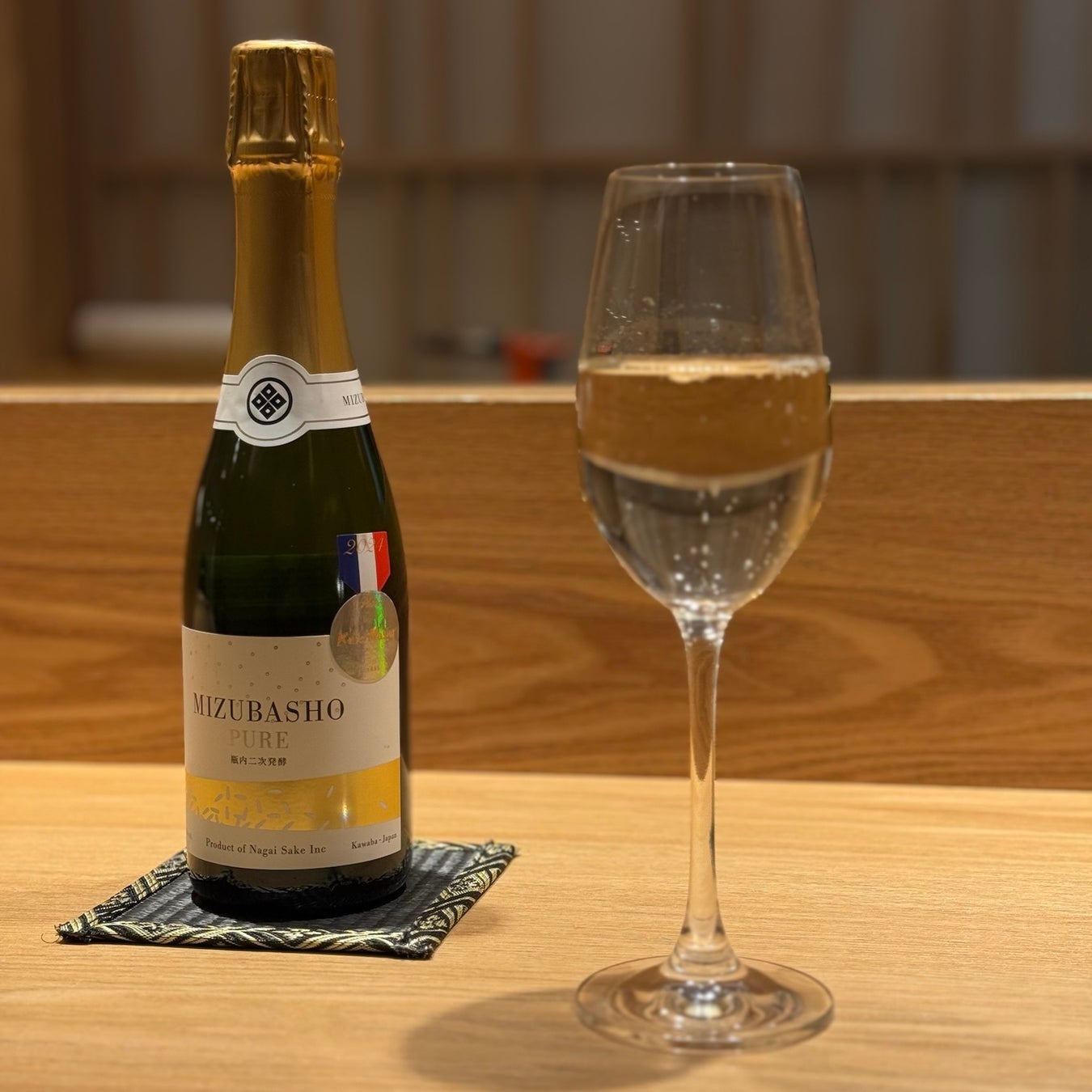 鮨カクテルと水芭蕉PUREのきめ細かな泡が