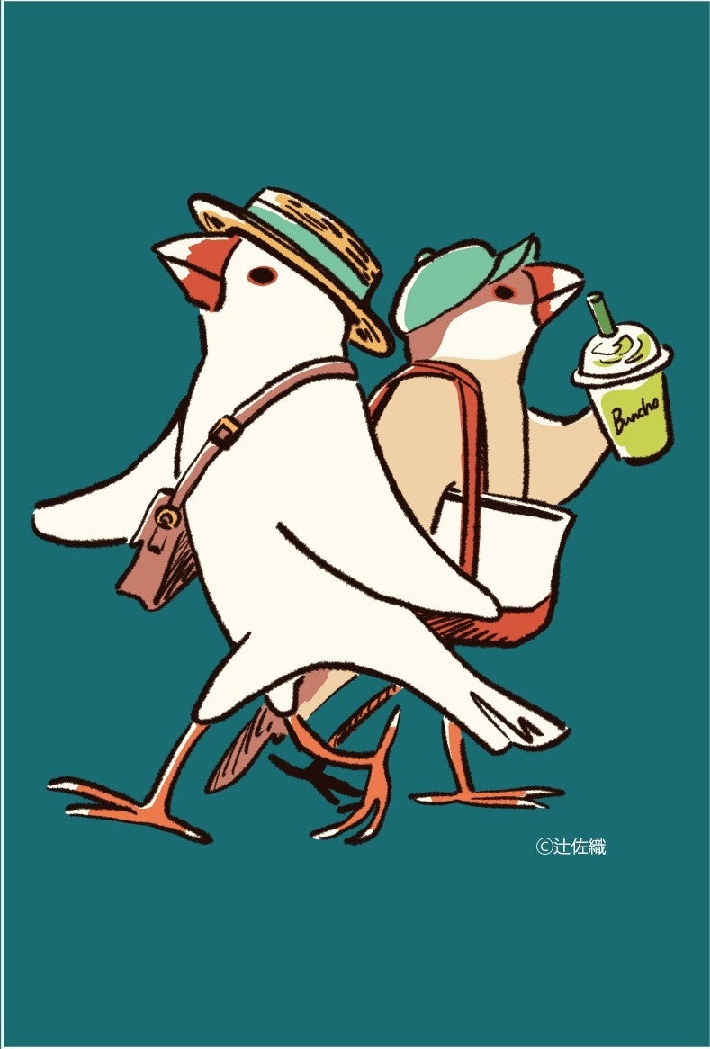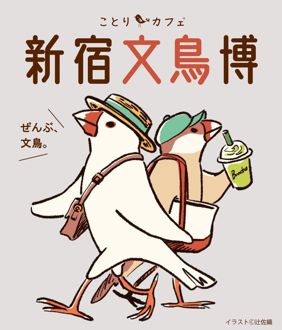 期間中、「新宿文鳥博」で税込2,200円以上お買い上げの先着500名様に辻佐織氏イラスト「ポストカード」1枚をプレゼント。※無くなり次第終了します。