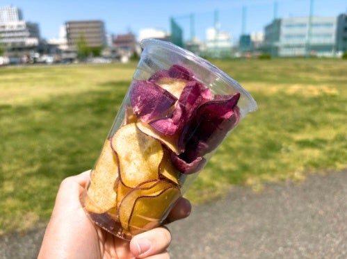 「ご当地チップス」は、やさしい甘さの中に塩気があり、軽い食感ながらも満足感があります。味はとみつスイートパープル、とみつ金時、糖蜜芋の3種類。価格は648円(税込)。