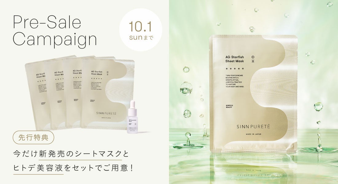 9月1日より公式オンラインストアでは、AGスターフィッシュ シートマスク4枚ご購入で、瞬時に浸透しハリ艶あふれる肌へ導く<7日分のヒトデ美容液>がセットになる特別キャンペーンを開催中!