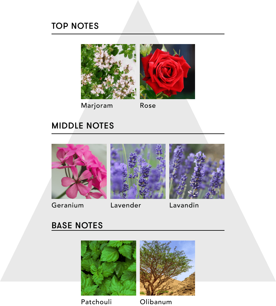 この香りとともに大きく深呼吸すれば脳内をブーストし心身をアクティブな状態へと導き、揺らぎがちな心をポジティブに整えます。ダマスクローズ、ゼラニウム、ラベンダー、スイートマジョラムなどの精油をブレンドした香り。