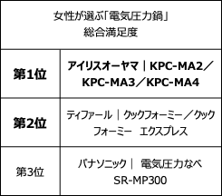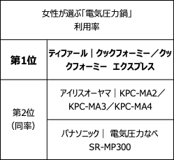 所有者の約85%が共働き「電気圧力鍋」は調理メニューの豊富さ重視/女性利用率第1位は4年連続「ティファール」、総合満足度第1位は「アイリスオーヤマ」