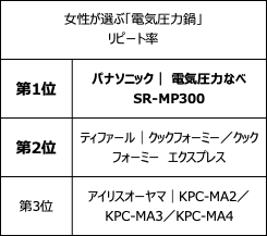 - 「パナソニック 電気圧力なべ SR-MP300」利用者:レシピが多く記載されている点が気に入っている」(50代・兵庫県)