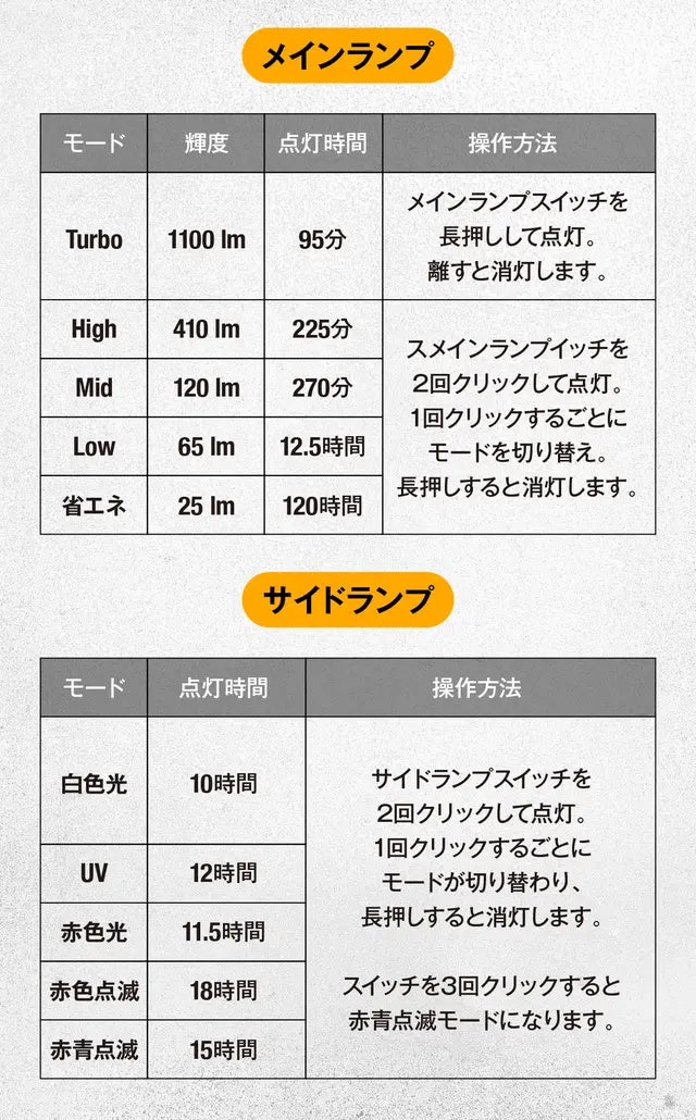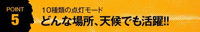 また、メモリー機能を搭載しているため、お気に入りの点灯モードを保存して置くことで身動きがとりずらい状況でも使用することが可能です。