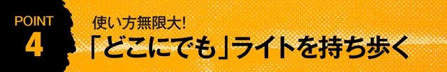 アウトドアでも、ランニングでも、急な夜間作業でも、どこにでも持っていける手軽さ。