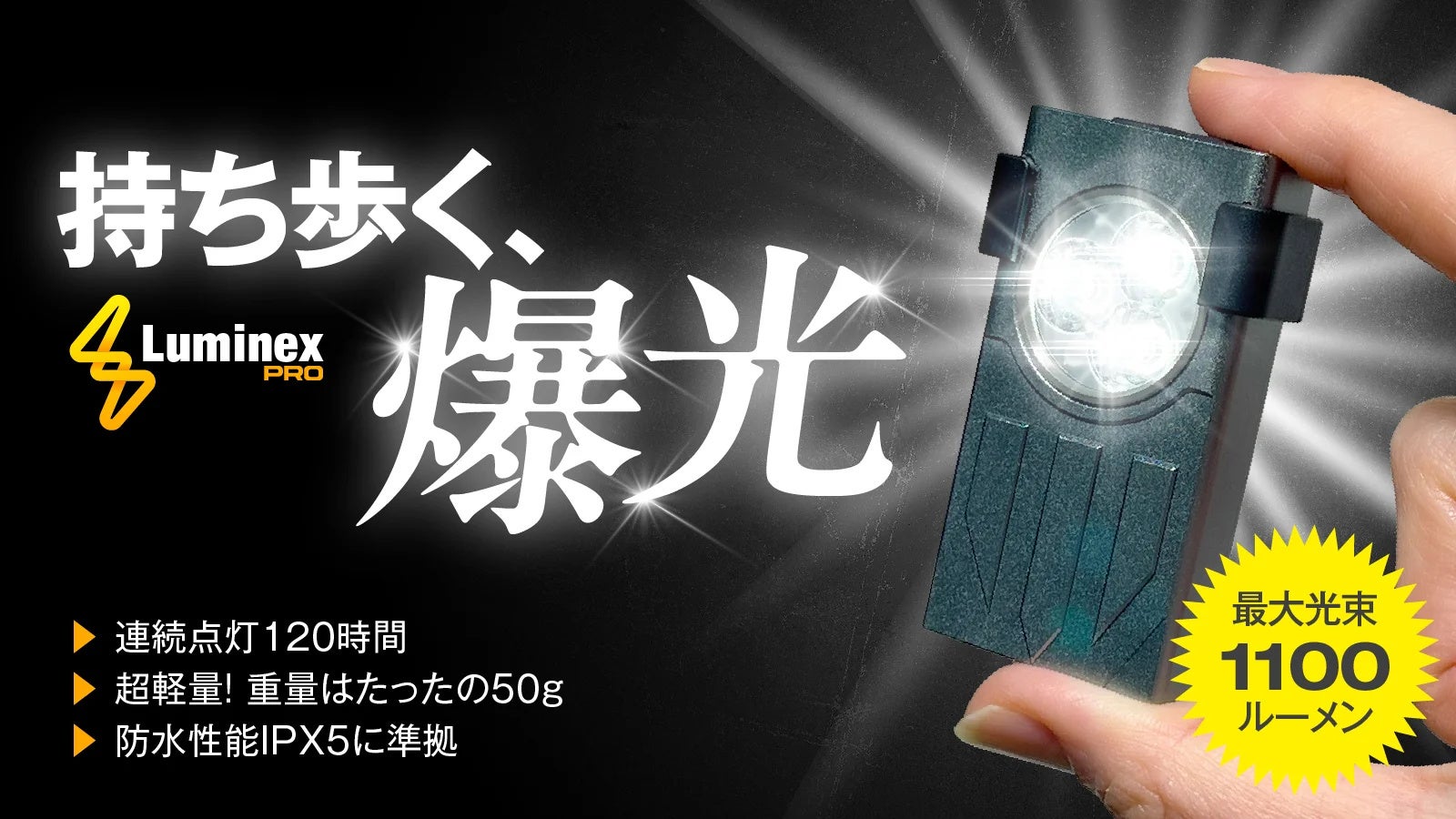 この驚異的な明るさにより、ルミネクスプロはアウトドア・災害時・夜間作業など様々なシーンでご活用いただけます。