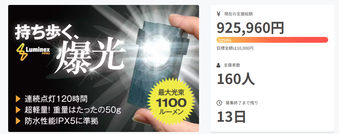 【支援者160名を突破!】キーホルダーサイズで驚異の明るさ1100ルーメンを誇る「Luminex Pro」がCAMPFIREにて限定販売予約公開中!