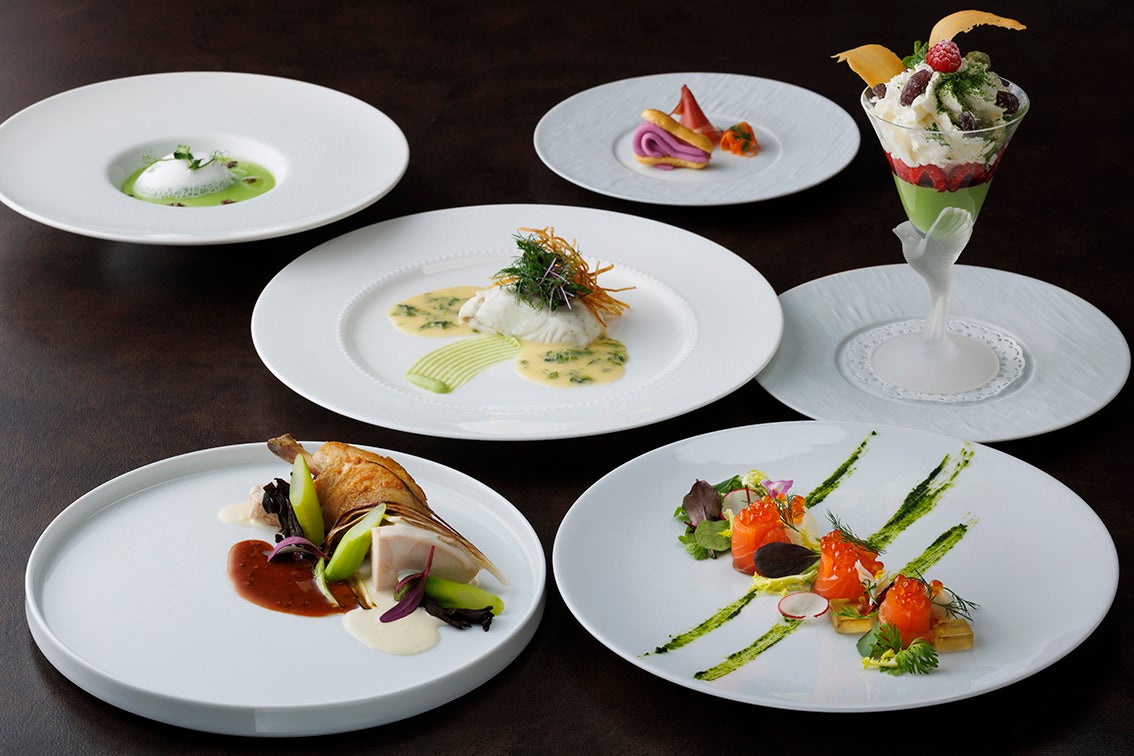 季節に合わせた素材を活かした現代風フランス料理をご堪能いただけるシェフお任せのディナーコースもご用意しております。5皿もしくは6皿のコースをお選びいただけます。