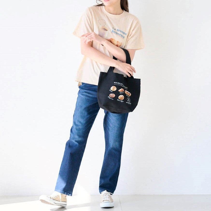 メゾンカイザーのパンをプリントした、しっかりとしたマチ付きのトートバッグ。13cmのマチ幅で、荷物がしっかり収まるので、毎日のお買い物や通勤・通学のサブバッグとしても頼りになるサイズ感です。肩掛けしやすい長さの持ち手も嬉しいポイント。