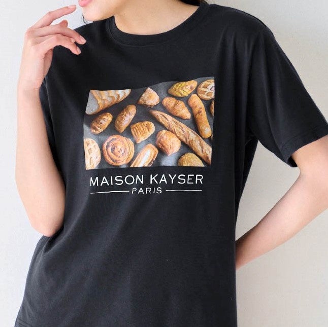 メゾンカイザーで販売しているクロワッサンやバゲットなどをモチーフに、フロント部分に大きめのプリントを施したTシャツ。柔らかなコットン素材で着心地が良く、どんなボトムスとも合わせやすいベーシックなデザインです。さりげなくメゾンカイザー愛を表現できる、ファン必見のアイテムです。
