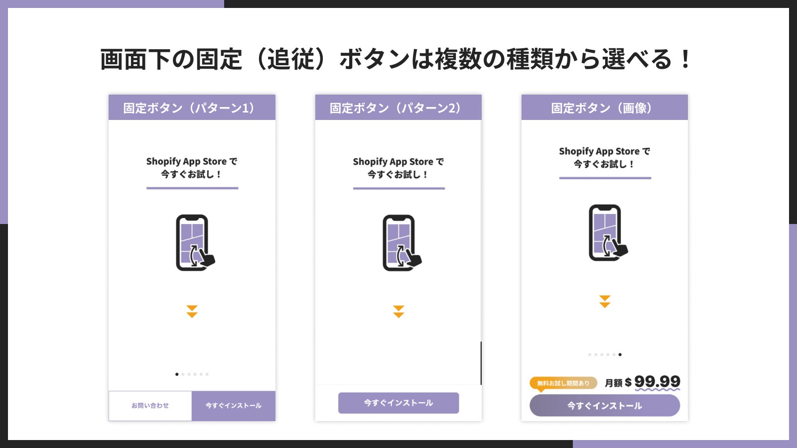 ■ 画面下の固定(追従)ボタンは複数の種類から選べる!