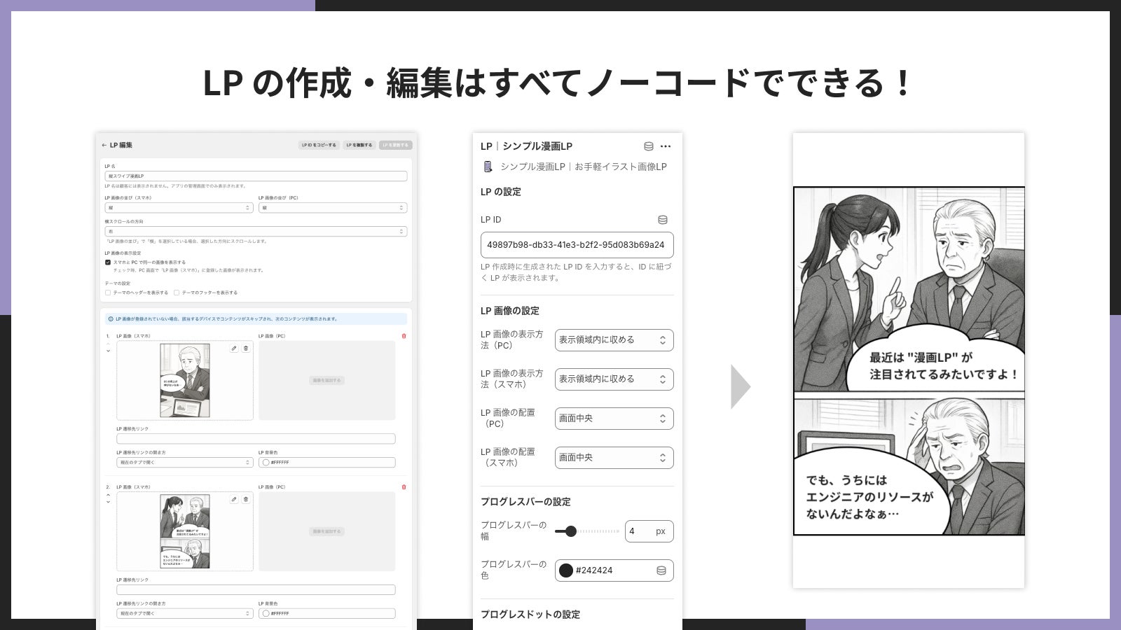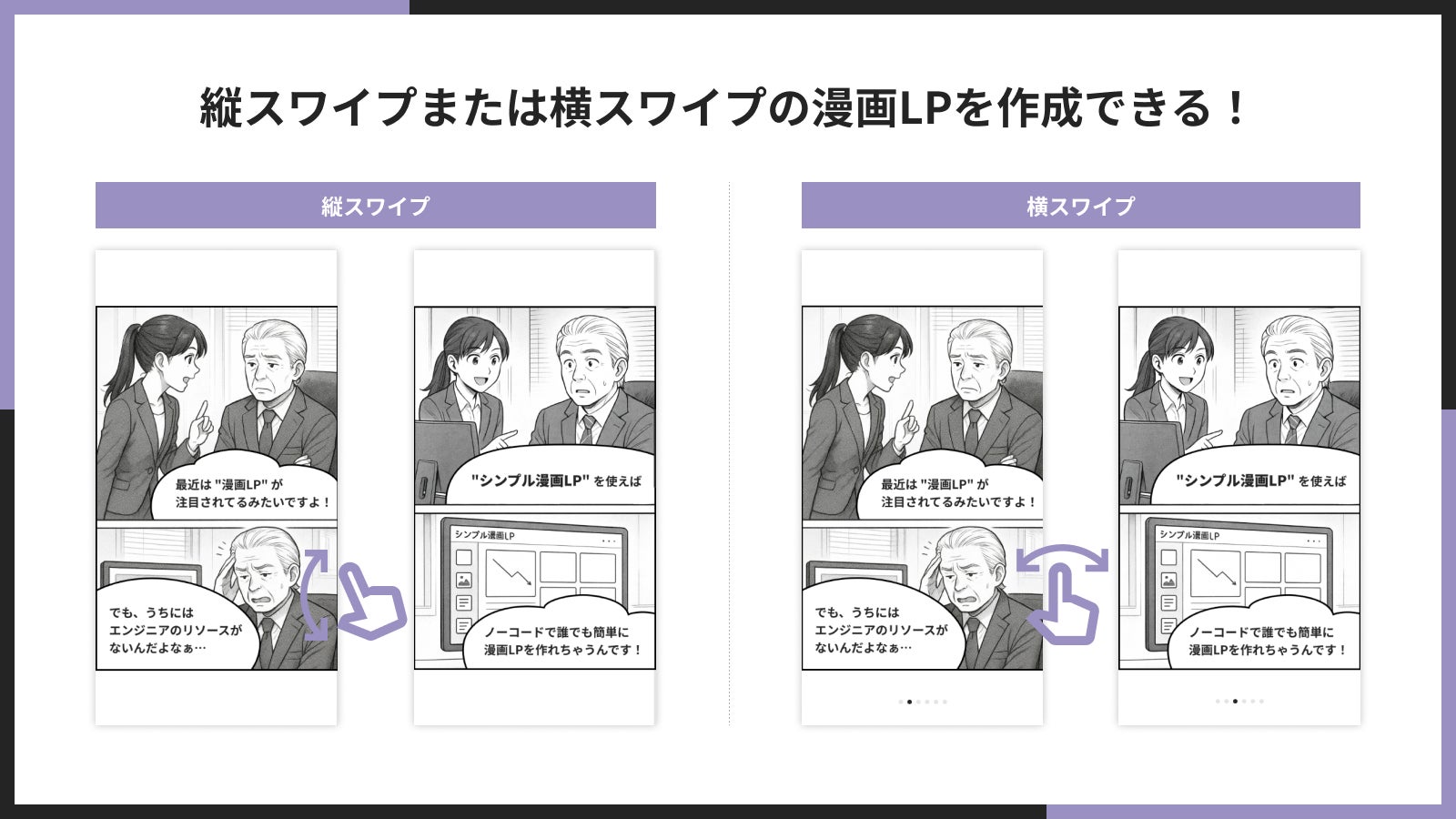 ■ 縦スワイプまたは横スワイプの漫画LPを作成できる!