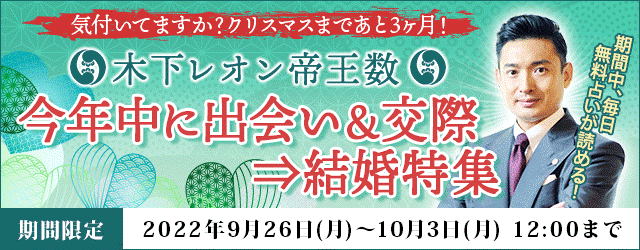大人気占い師・木下レオンの月額公式サイト『木下レオン◆帝王数』にて、『木下レオン帝王数 「今年中に出会い&交際⇒結婚特集」』を開催中!